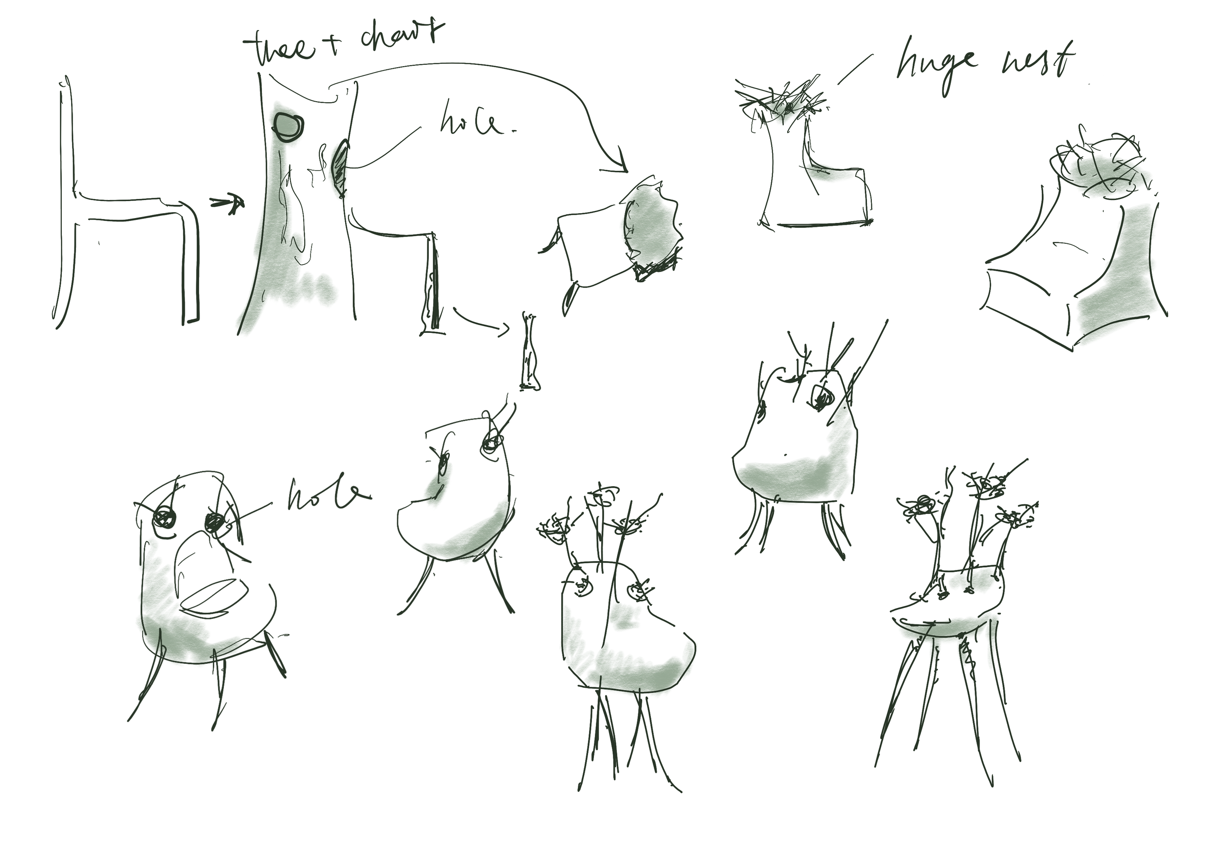 Incorporates holes into the traditional chair design to accommodate nesting, as 80% of birds rely on nests to live in.