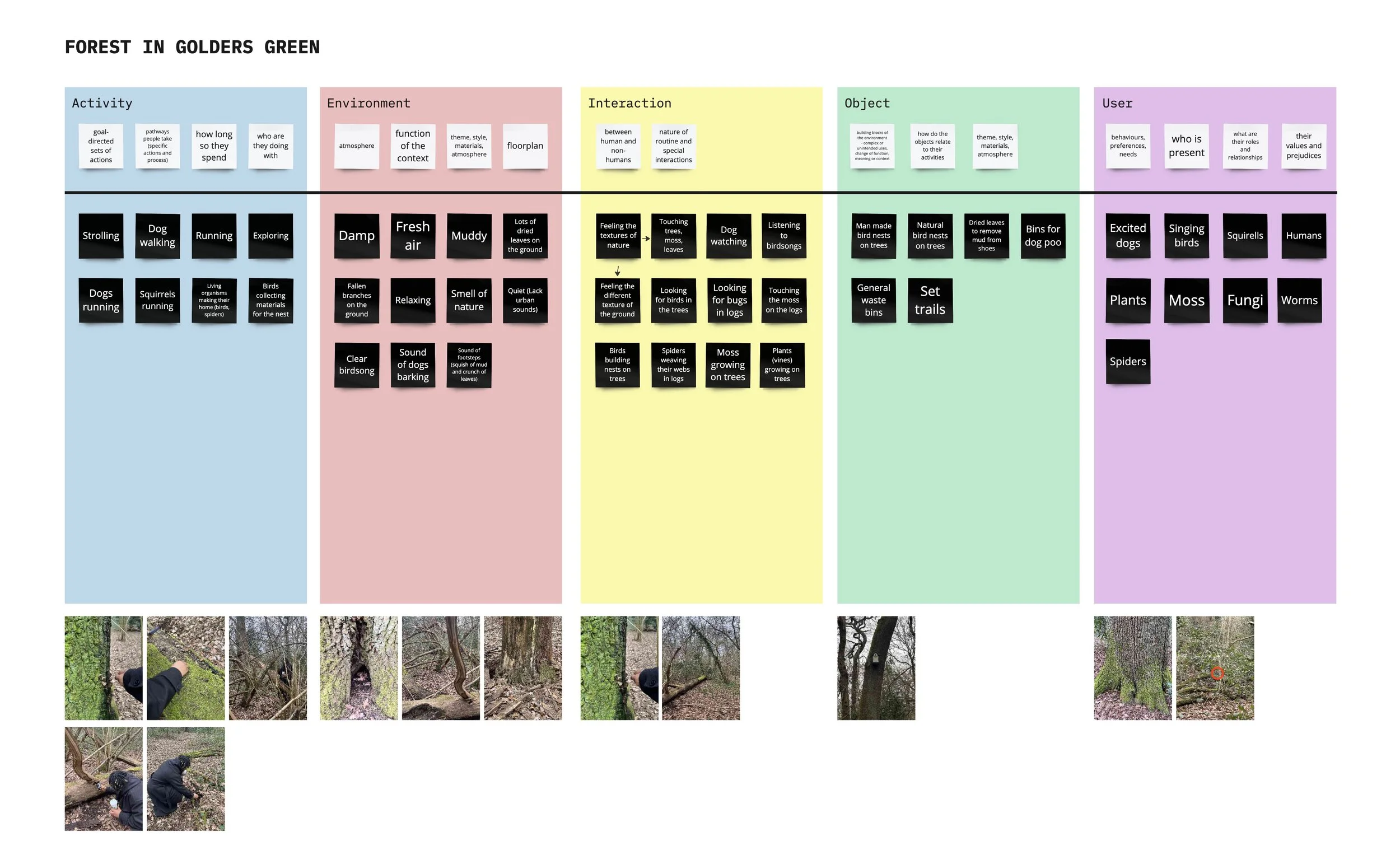 We utilized the AEIOU framework to thoroughly understand the interactions and environments both in homes and natural settings.